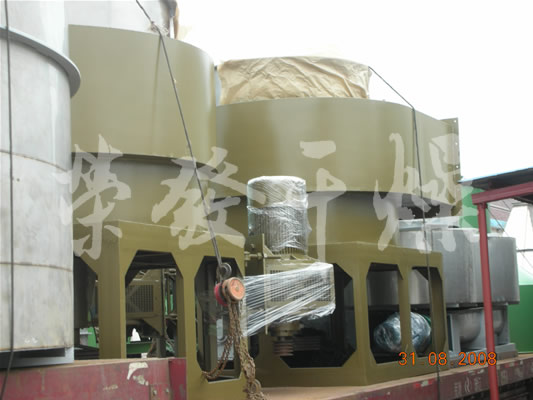 熱空氣切線進入干燥器底部,在攪拌器帶動下形成強有力的旋轉風場。膏狀物料由螺旋加料器進入干燥器內,在高速旋轉攪拌槳的強烈作用下,物料受撞擊、磨擦及剪切力的作用下得到分散,塊狀物料迅速粉碎,與熱空氣充分接觸、受熱、干燥。脫水后的干物料隨熱氣流上升,分級環將大顆粒截留,小顆粒從環中心排出干燥器外,由旋風分離器和除塵器回收,未干透或大塊物料受離心力作用甩向器壁,重新落到底部被粉碎干燥。